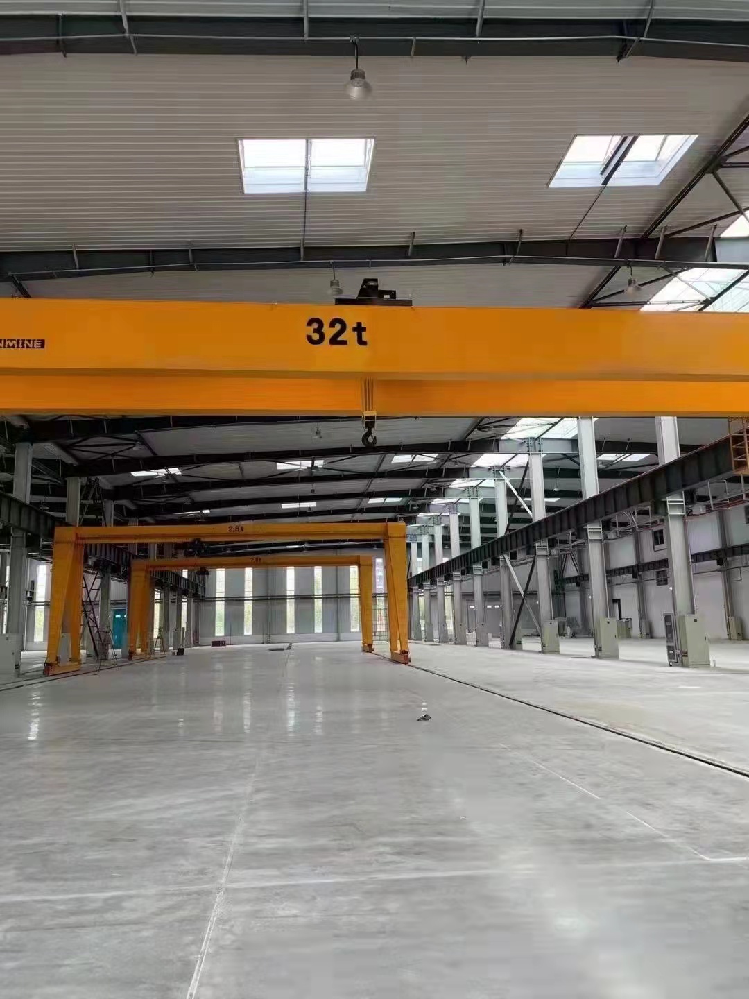 橋式起重機不帶支腿,而是沿著由固定橋墩支承的軌道上運行。習慣上把它叫做“天車”或“行車”。