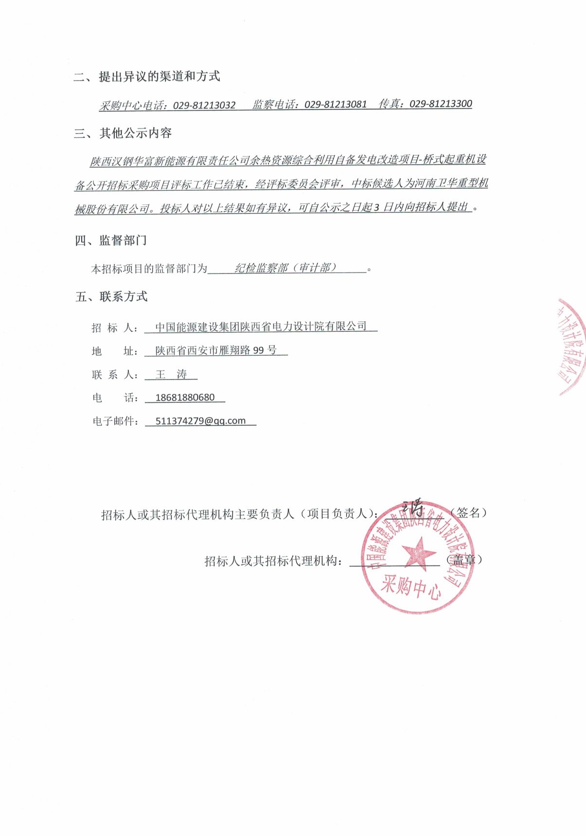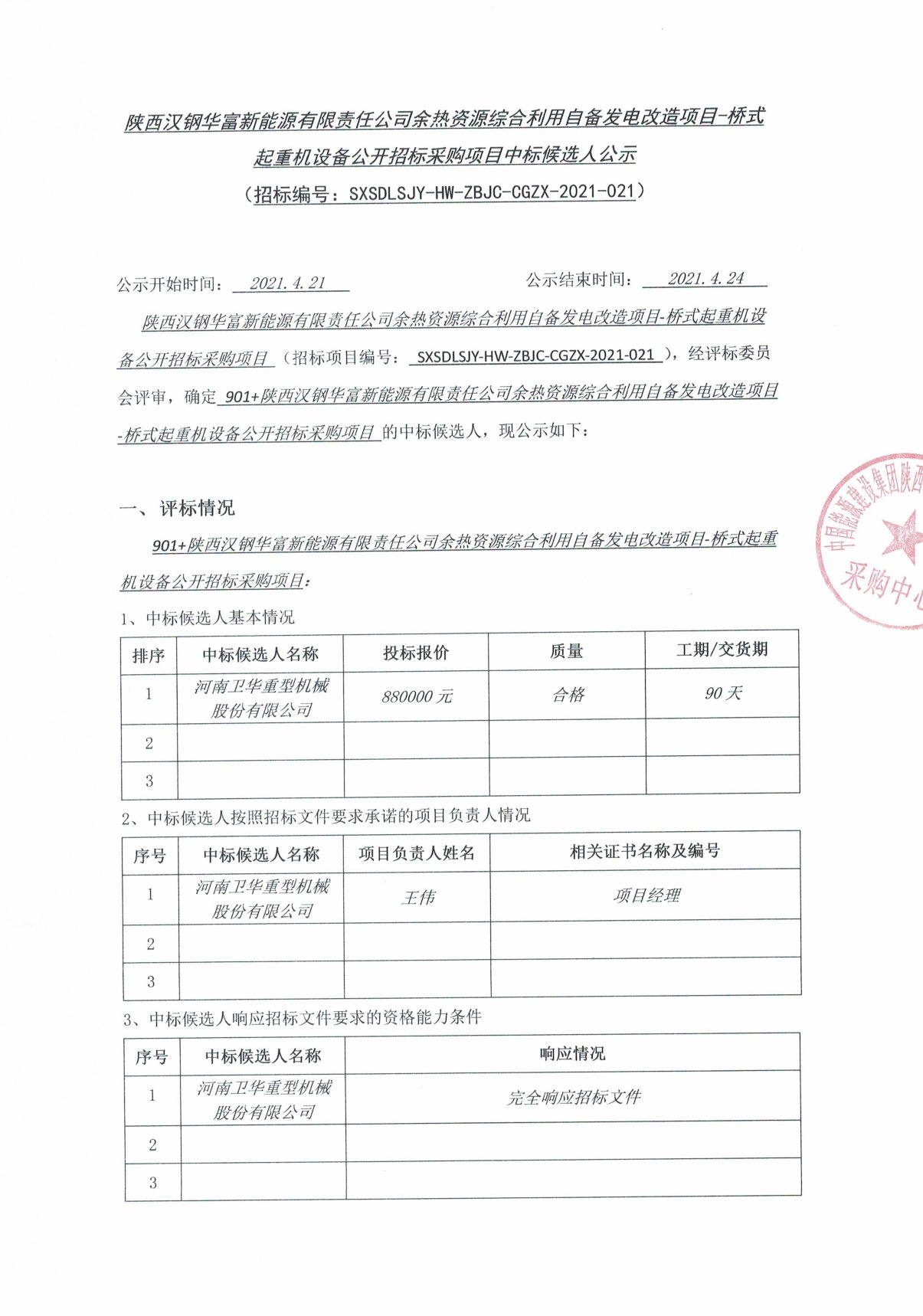 陜西漢鋼華富新能源有限責(zé)任公司余熱資源綜合利用自備發(fā)電改造項目-橋式起重機設(shè)備公開招標(biāo)采購項目中標(biāo)候選人公示 SWF文件鏈接
