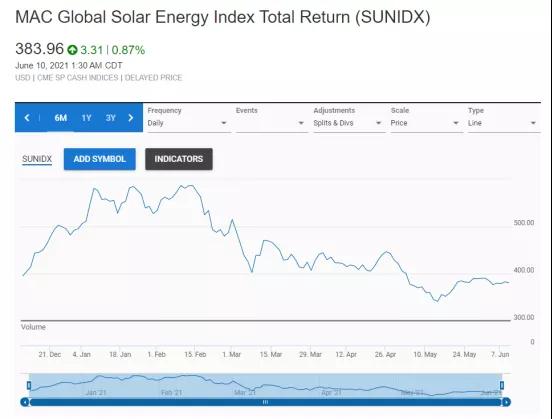 供應(yīng)鏈的浮動和各種成本上漲已經(jīng)波及到了資本市場,五月上旬,(詳情點擊:原材料漲價致美國光伏股暴跌,Sunworks、Array Technologies跌幅超40%),最近幾周,MAC全球太陽能指數(shù)自年初至今跌幅超24%。